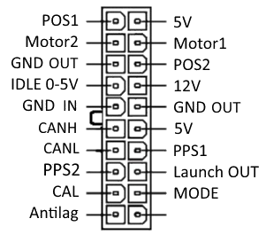 These can be identified by checking for a resistance under 10Ω at the throttle connector. Polarity is not important. - POS1 / POS2 – Throttle position sensor inputs.